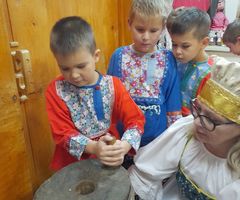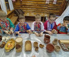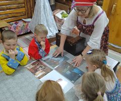 На базе пространства реализуются музейно-образовательные программы "ДОМ" и "Введение в предметный мир". Реализуемые авторские музейно-образовательные программы «Дом», «Введение в предметный мир» являются новым типом научно-методической разработки, продуктом инновационной интегрированной образовательной практики педагогов детского сада и музейных работников. Авторские музейно-образовательные программы «Введение в предметный мир» для детей среднего дошкольного возраста, «Дом» для детей старшего дошкольного возраста реализуемые в ДОУ, позволяют воспитанникам погрузится в богатый этнографический мир, приобщится к народной культуре и самим прикоснуться к старине. Вся деятельность по программе «Введение в предметный мир» проходит в группе, её организует и проводит Хозяйка «Крестьянской избы» – воспитатель по музейно-образовательной деятельности. Хозяйка приходит с сундуком, в котором старинные предметы (ложка, самовар, полотенце, утюг, игрушка, одежда – все это темы программы, по которым проводится непосредственно образовательная деятельность). Программа «Дом» строится на местной, региональной платформе. В ее основе – материальная и духовная культура русских Севера (Заонежье, Пудожье, Поморы).