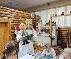 В нашем дошкольном образовательном учреждении функционирует музейно-образовательное пространство «Крестьянская изба», выполненное по макету избы крестьянина Ошевнева, расположенной на территории музея-заповедника "Кижи". Музейно-образовательное пространство наполненно подлинными предметами, которые собирали сотрудники ДОУ и родители воспитанников. Музейно-образовательное пространство «Крестьянская изба» внесена в сводный каталог музеев образовательных учреждений Республики Карелия. «Крестьянская изба» - музейно-образовательная развивающая предметно-пространственная среда, которая существенно дополняет сложившуюся систему развивающих сред ДОУ. В основе использования данного пространства лежит технология «средового образования» моделирующая различные жизненные ситуации, которые проживает ребенок, и которые способствуют его социальной закалке, развитию коммуникативности. Социальная адаптация происходит органично в игровой форме, в «домашней обстановке», через предметную среду «Крестьянской избы», сомаштабную ребенку, его рукам, росту и сомаштабную миру взрослых.